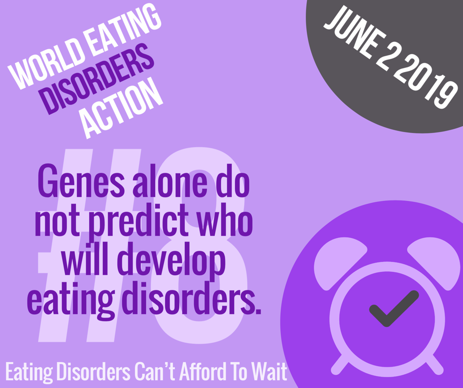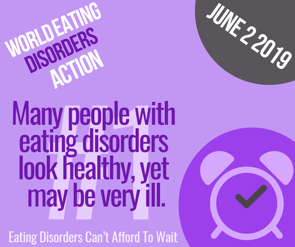 Use the campaign hashtags #ShowUsYourPurple, #WeDoActNow, #WorldEDDay2019 and #EatingDisordersCantAffordtoWait. Share, repost or retweet these downloadable graphics, or create a custom social media post sharing what this day of action means to you.
