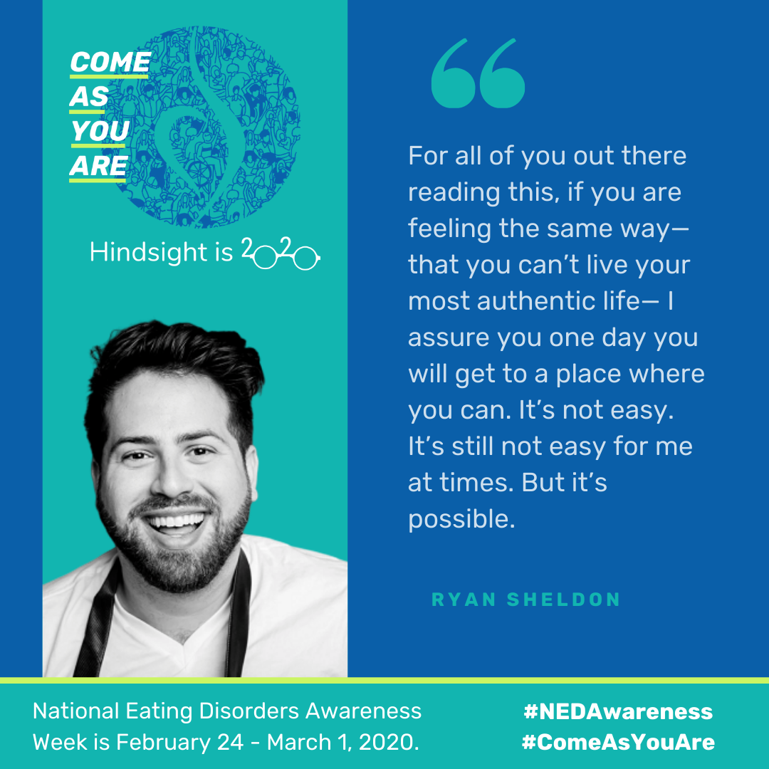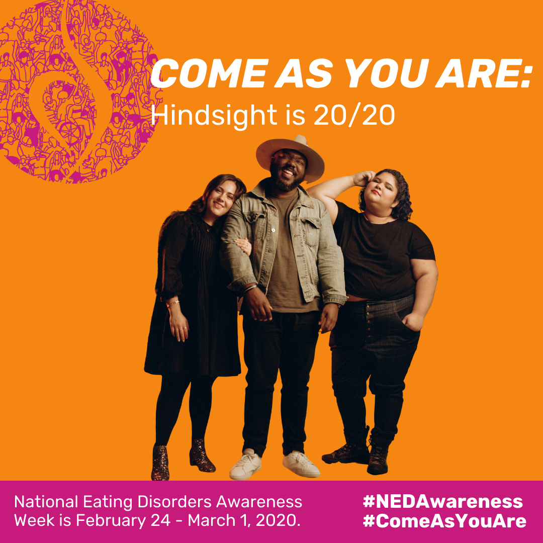 Building off last year’s success and continued relevance, we want you to #ComeAsYouAre again for NEDAwareness Week 2020! From February 24th to March 1st, we encourage our community to embrace this year’s theme, Come as You Are: Hindsight is 20/20, by reflecting on the positive steps you've taken — including those stemming from setbacks or challenges — toward accepting themselves and others.