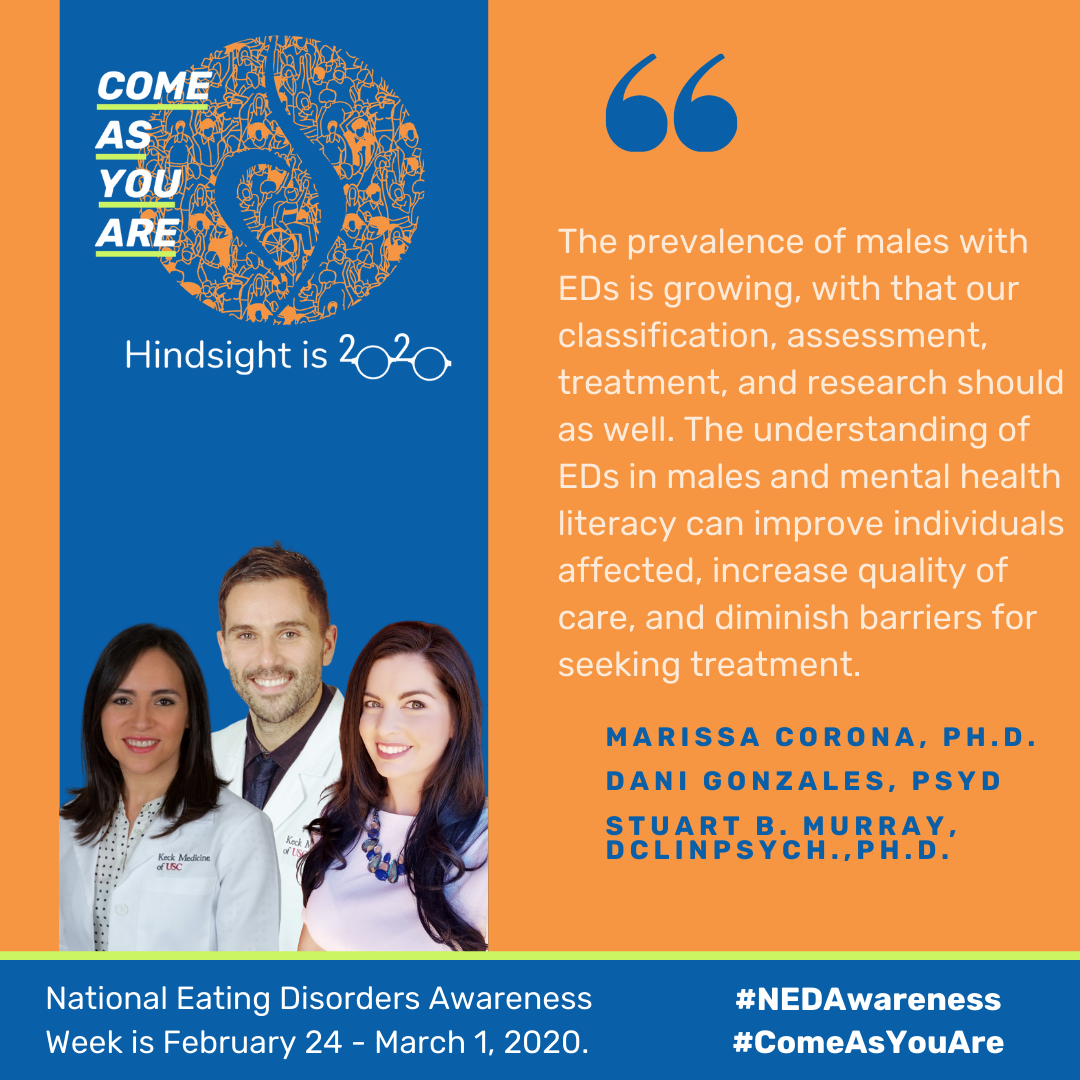Eating disorders (EDs) do not discriminate against age, ethnicity, sexual orientation, or even gender. While research on male eating disorders is scarce, findings consistently illustrate unique variants and differences in presentation and symptomatology. Thus, there is a critical need to understand the nuances between genders in order to better conceptualize, prevent, and treat, eating disorders adequately in males.