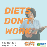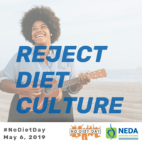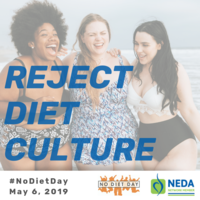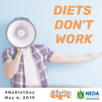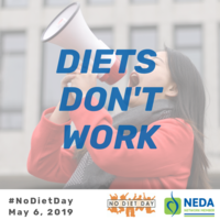 The NEDA Network, a collaboration between NEDA and other like-minded eating disorders organizations, is working to promote No Diet Day, taking place on May 6, 2019. Network organizations are supporting No Diet Day to encourage the rejection of diet culture and the elimination of shame associated with society’s standards of beauty and respect for all body shapes and sizes.