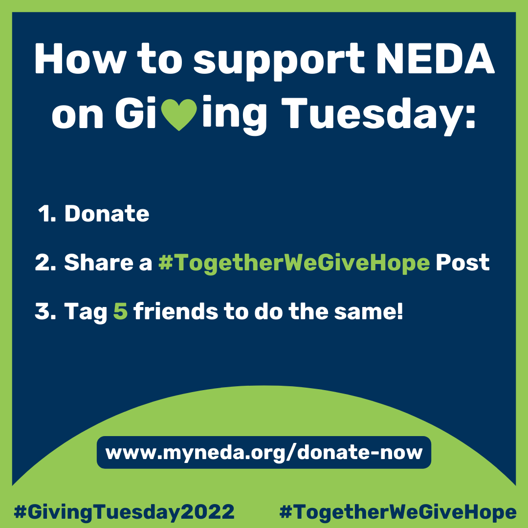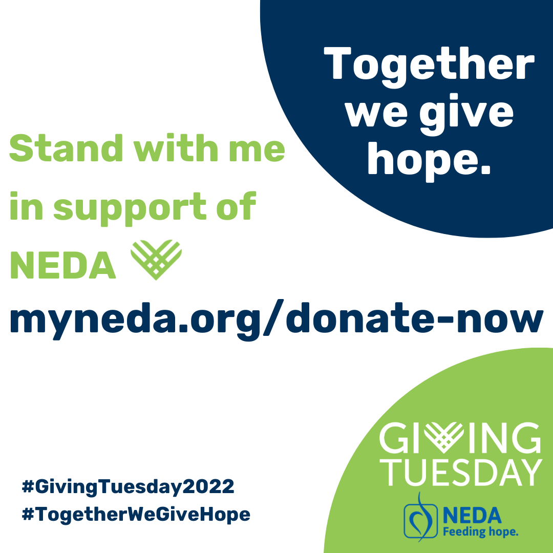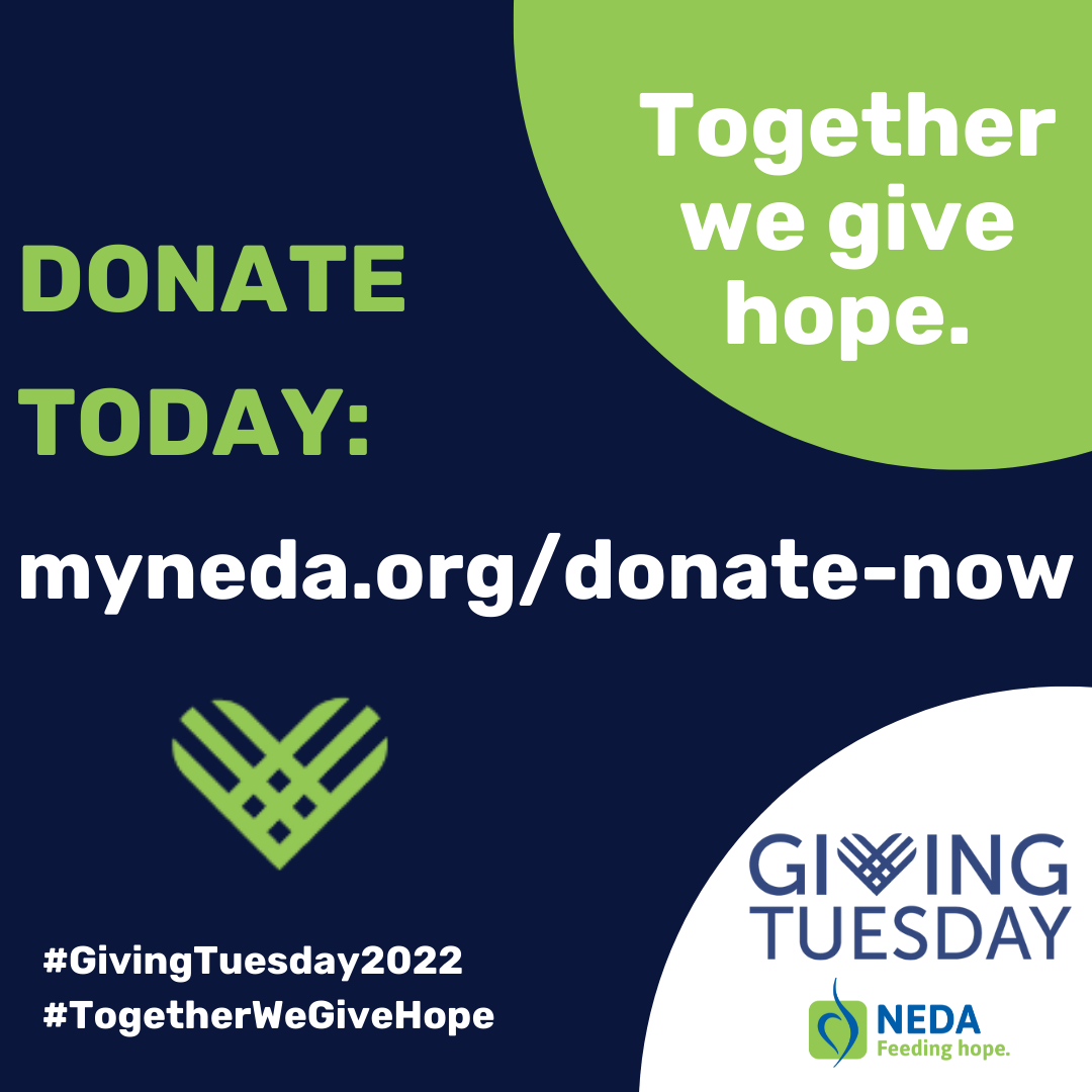 Thank you for taking action on November 29, 2022 for Giving Tuesday to make a difference in the lives of individuals and families affected by eating disorders. With your help, NEDA can provide hope to thousands of individuals in need of resources, information and treatment options.