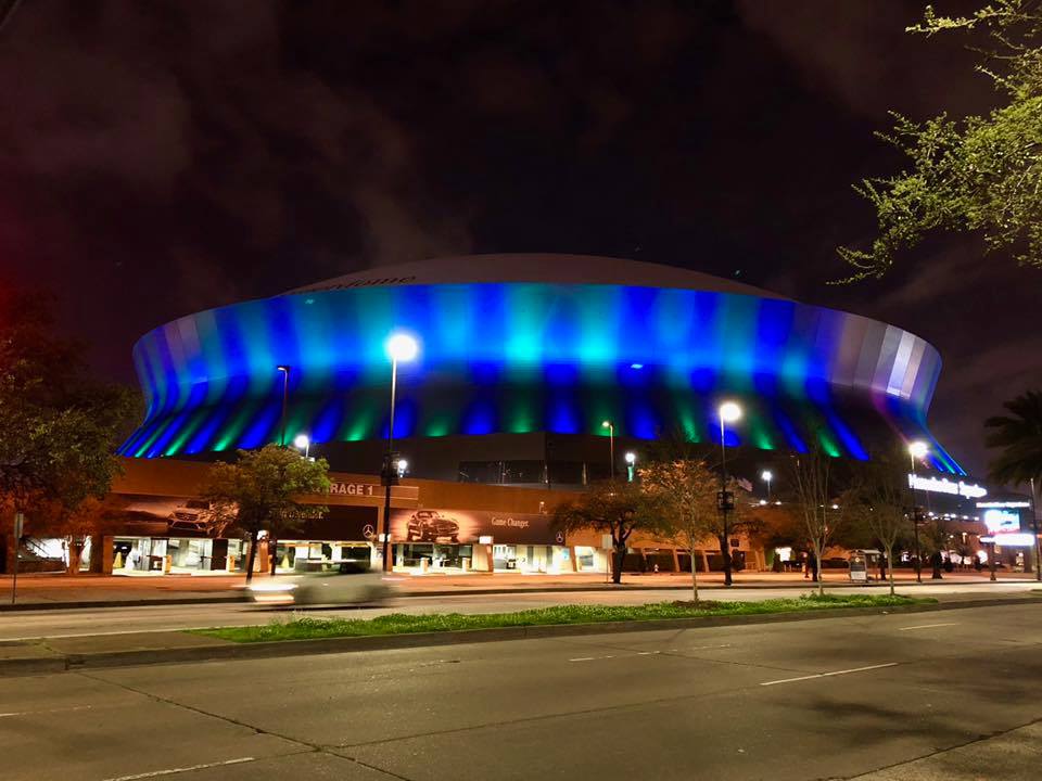 Patty Teigen Long: “What does seeing the Superdome lit up in blue and green mean to me and my family? Simply put.."Hope." As we help navigate the road to recovery with our young daughter, seeing a building that represents strength and endurance in my city lit in blue and green is breathtaking.” [Photo by @PattyTeigenLong]