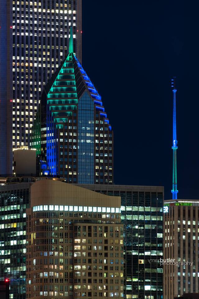 Samantha Brior: "When I took the picture of the AON building and Prudential Plaza in light of NEDAwareness week in Chicago, it reminded me of just how badly I want to help those that feel like they are fighting this disease alone. To anyone else, it could just be buildings lit up, but to fighters everywhere it is a sheer sign that we will stand tall and not let this disease control our lives.” [Photo by Barry Butler Photography]